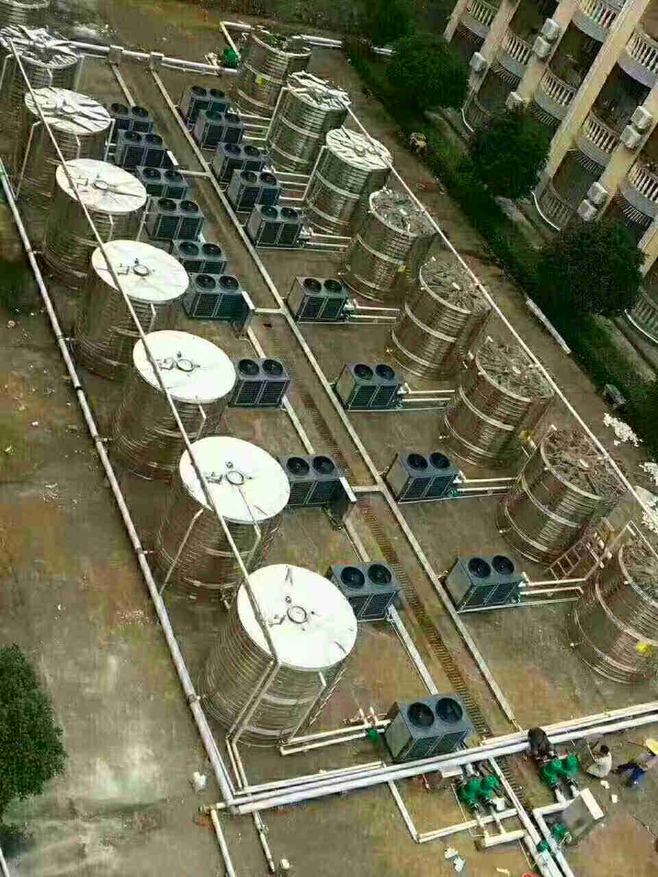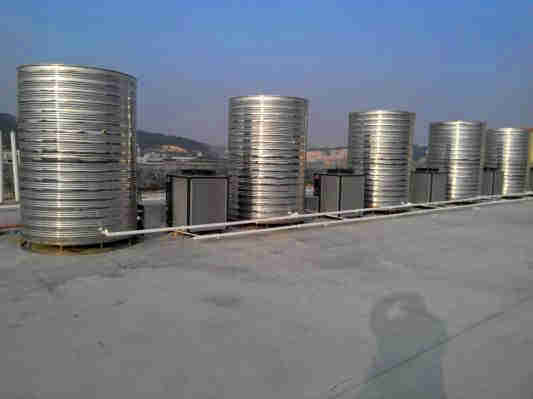 在標(biāo)況下系統(tǒng)設(shè)計為自來水流經(jīng)機組一次升溫5℃。將保溫水箱中的水循環(huán)加熱至設(shè)定溫度。系統(tǒng)設(shè)計簡單,在天氣比較寒冷區(qū)域,機組能穩(wěn)定運行。